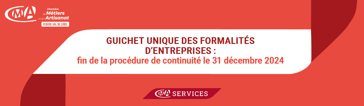 Mise en place de façon provisoire, la procédure actuelle de continuité pour les formalités d’entreprises, parallèle au Guichet unique, s’arrêtera le 31 décembre 2024 (conformément à l’arrêté du 26 décembre 2023 pris en application de l'article R. 123-15 du code de commerce).
